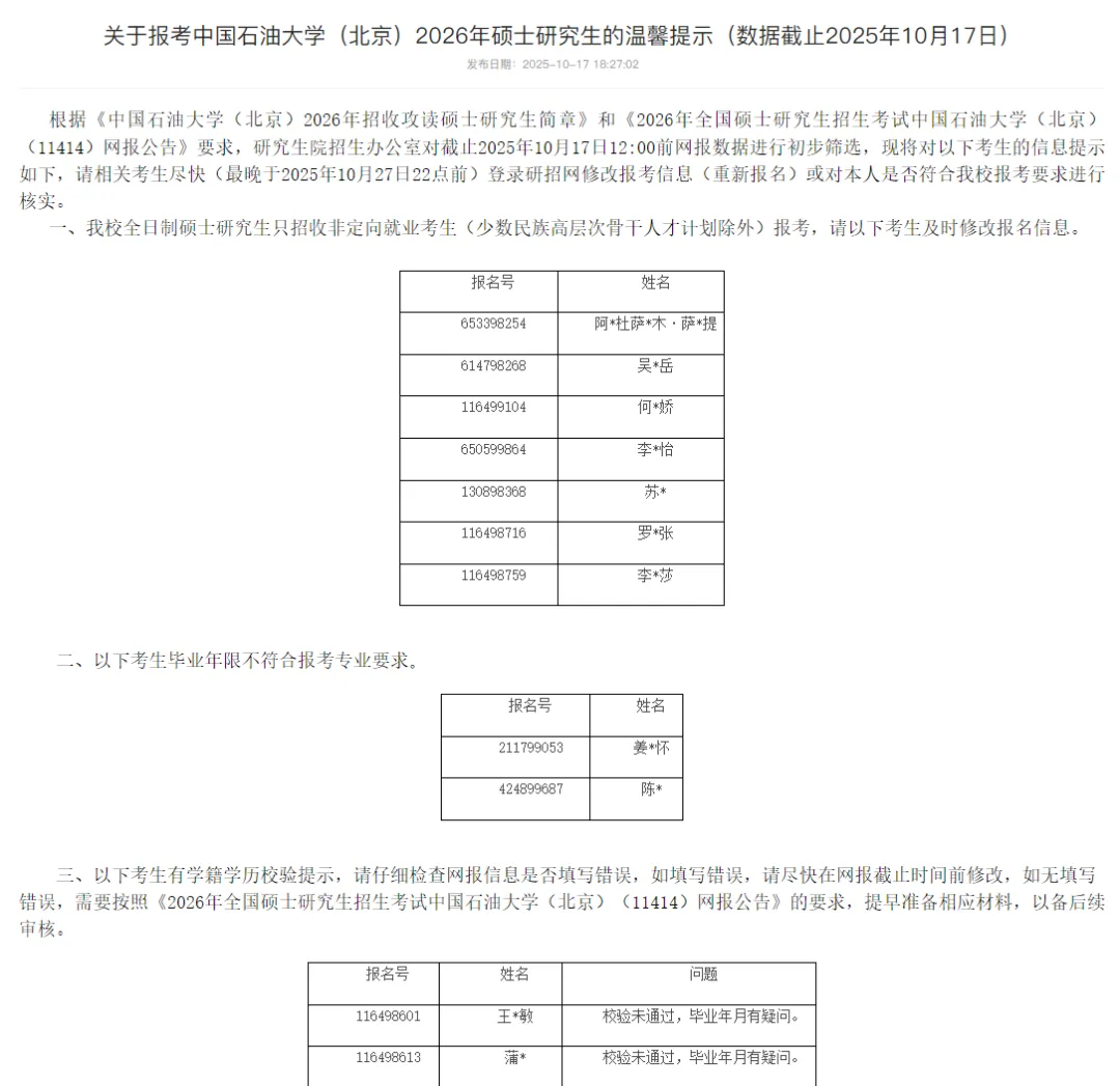 26考研报名陆陆续续的快要进入尾声了,大部分院校的报名不合格名单也陆陆续续出来了!一定要再次登录账号看一下自己是否报名成功!
