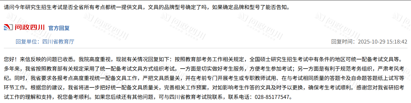 我省要求各报考点高度重视统一配备文具工作。