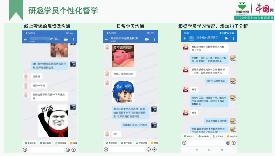线上课的督学服务让备考不再 “孤军奋战”。研趣为每位线上考生配备专属班主任,通过企业微信、研趣智能学习平台实时跟进学习进度,督促每日打卡、完成学习任务,解答备考过程中的各类问题;授课老师全程不限次答疑,考生在学习中遇到的马理论知识点疑问、真题解题困惑,可随时在答疑群提问,老师及时回复,做到问题不过夜。此外,研趣智能学习分析系统还会记录考生的学习行为数据,对比目标院校分数、同系统考生分数,让考生清晰掌握自己的备考进度。